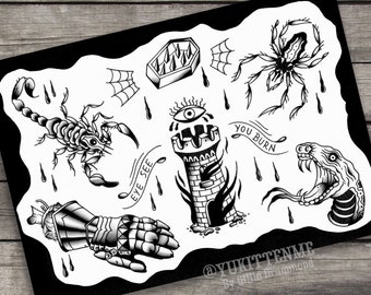 Tattoo Flash Sheet 12x16 Hand Drawn Digitally Etsy Hong Kong
